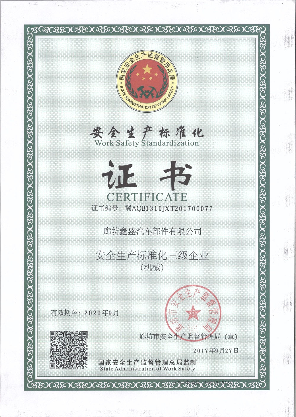廊坊鑫盛公司坐落于京津之間的廊坊市永清燃?xì)夤I(yè)區(qū),占地一萬(wàn)余平方米,交通便利。公司建有現(xiàn)代化的廠房及辦公樓,配備標(biāo)準(zhǔn)的檢驗(yàn)室和化驗(yàn)室。總建筑面積5800平方米。 公司前身以金屬機(jī)械加工制造為主的制造型企業(yè)擁有現(xiàn)代化的數(shù)控機(jī)床,磨床,拉床及進(jìn)口的機(jī)械加工中心等先進(jìn)的加工設(shè)備。擁有高端技術(shù)的三坐標(biāo)測(cè)量機(jī),日本三豐粗糙度儀等先進(jìn)的檢測(cè)設(shè)備。先進(jìn)的設(shè)備和高技術(shù)的檢測(cè)手段以及公司科學(xué)的管理理念,對(duì)產(chǎn)品的質(zhì)量提供了有力的保障,從而贏得了廣大客戶的信賴。公司先后為亞新科制動(dòng)系統(tǒng)公司,一汽大眾公司等知名企業(yè)生產(chǎn)加工制動(dòng)系統(tǒng)配件,產(chǎn)品質(zhì)量得到了認(rèn)可,并榮獲“優(yōu)秀供應(yīng)商”。